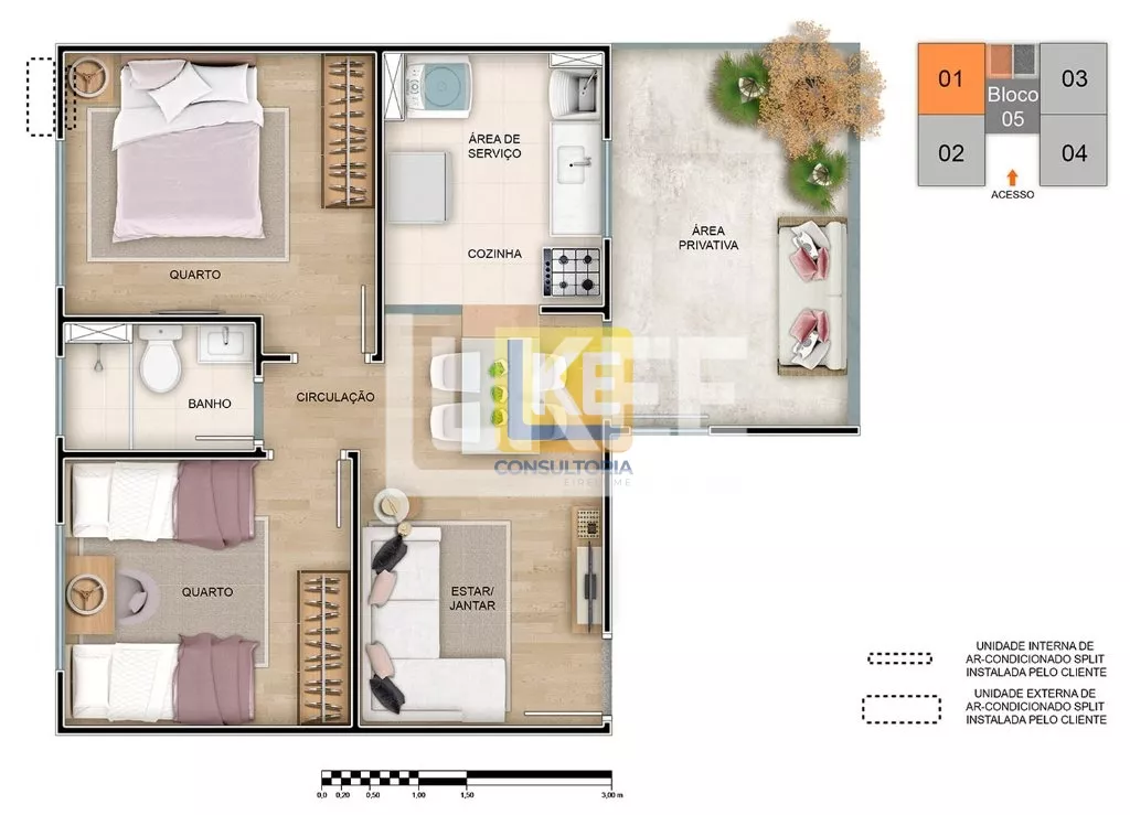2 Dormitórios Área total: 40,82m²