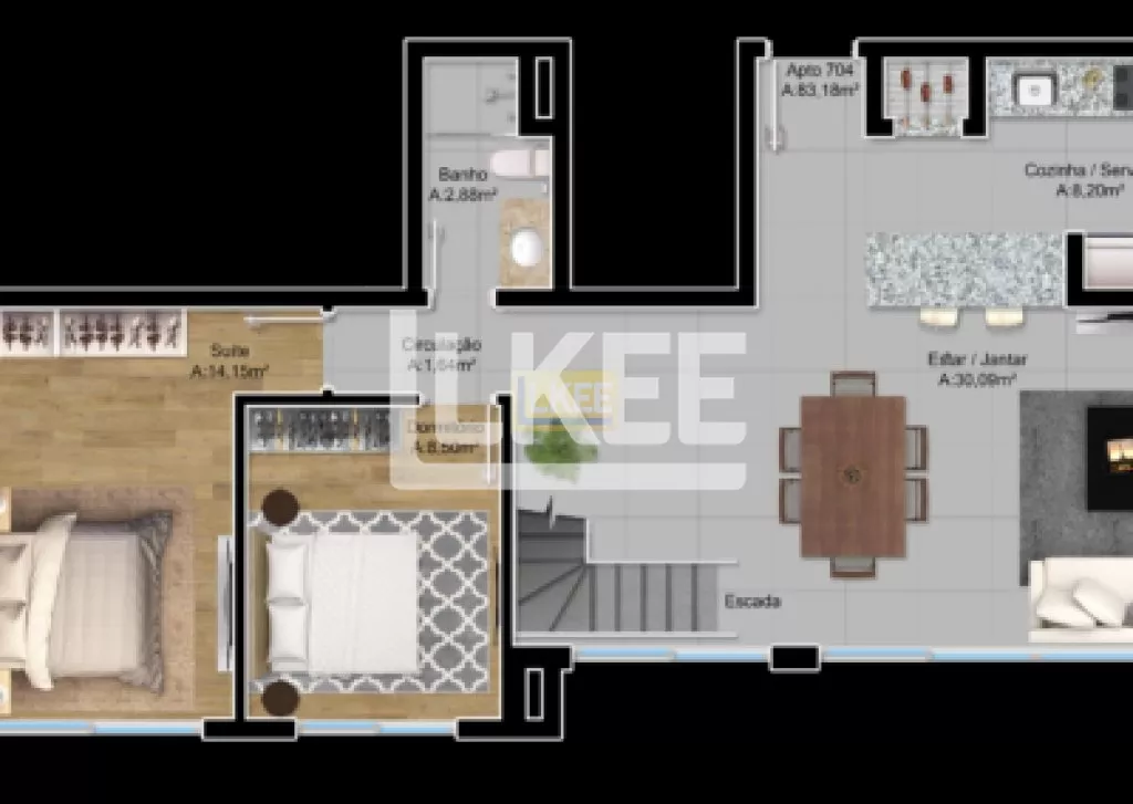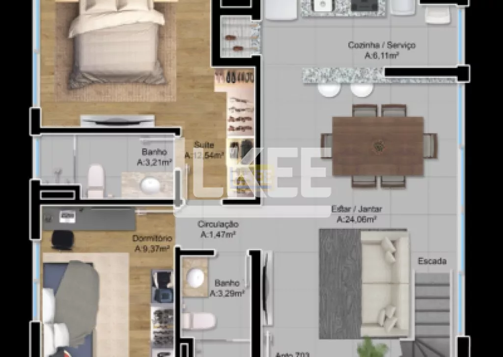 2 e 3 dormitórios – 70 m², 83 m² e 102 m²;