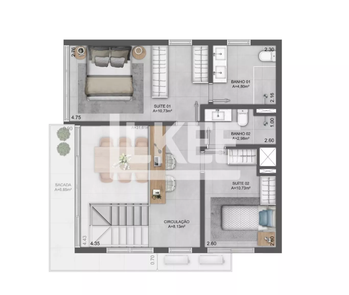 2 SUÍTES | 81,09 m² | 2 VAGAS