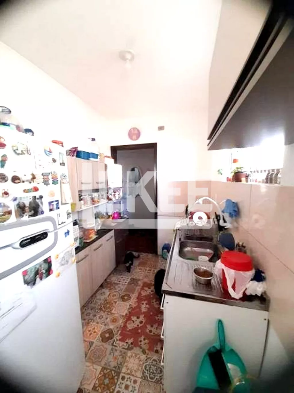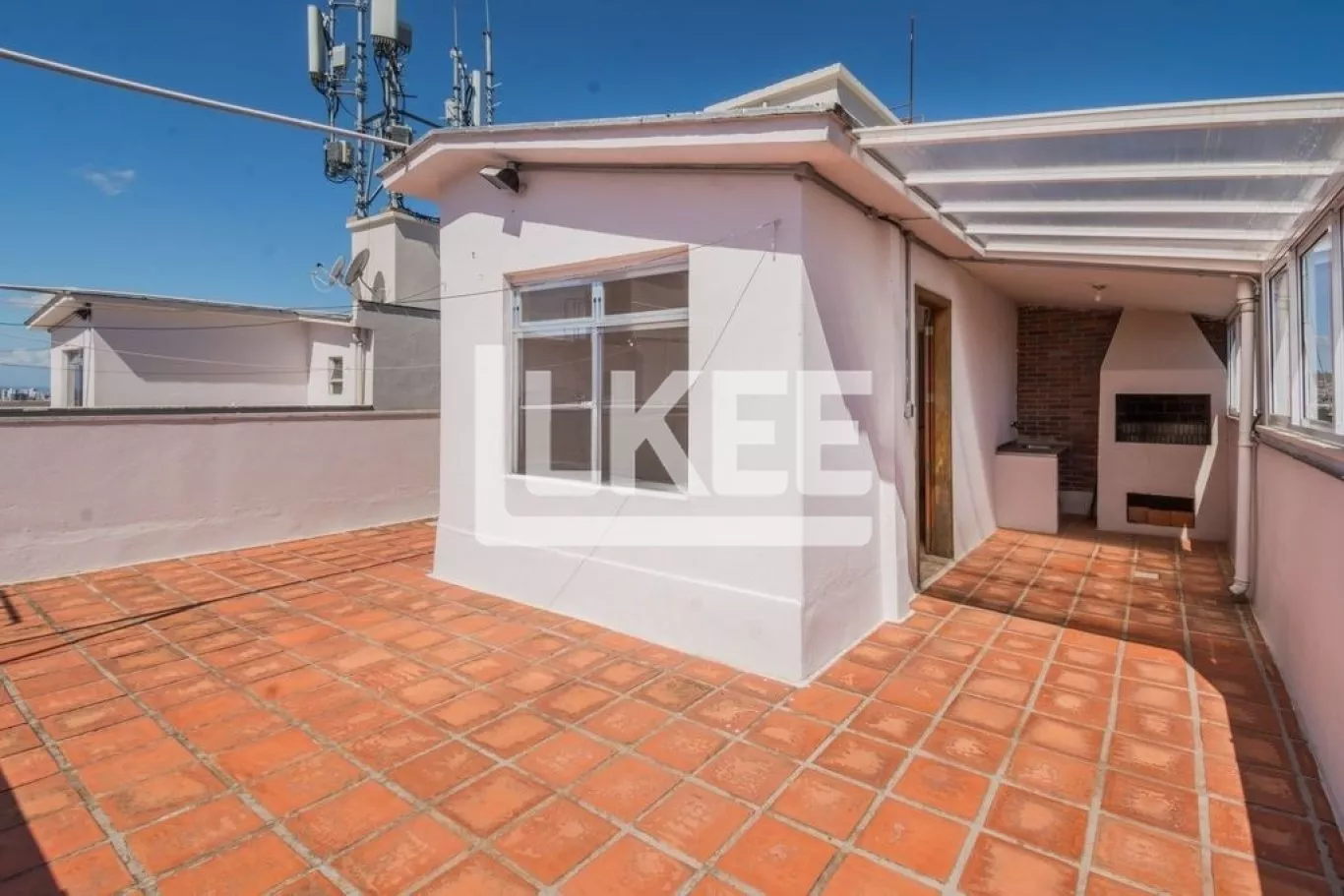 A sala de estar / jantar é conectada diretamente ao pátio que possui com 20 m², está revestido com lajotas (reformado recentemente inclusive a hidráulica). Cozinha, banheiro social e área de serviço. Piso parquet no interior do apartamento.