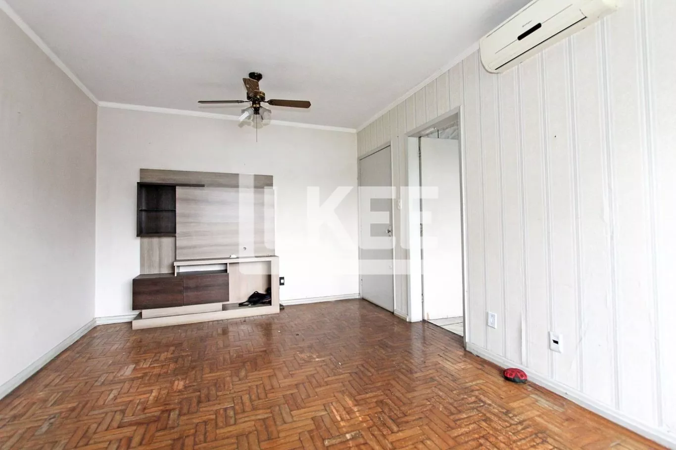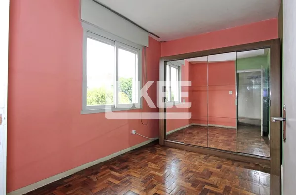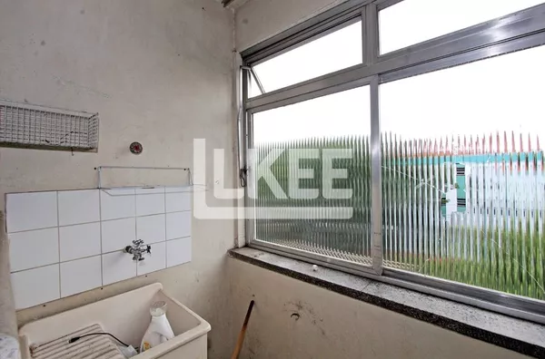 Apartamento com sala de estar e jantar integradas, banheiro social, cozinha e área de serviço. Ficam moveis fixos cozinha e banheiro, piso parquet e sol o dia todos.