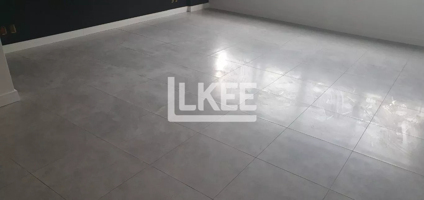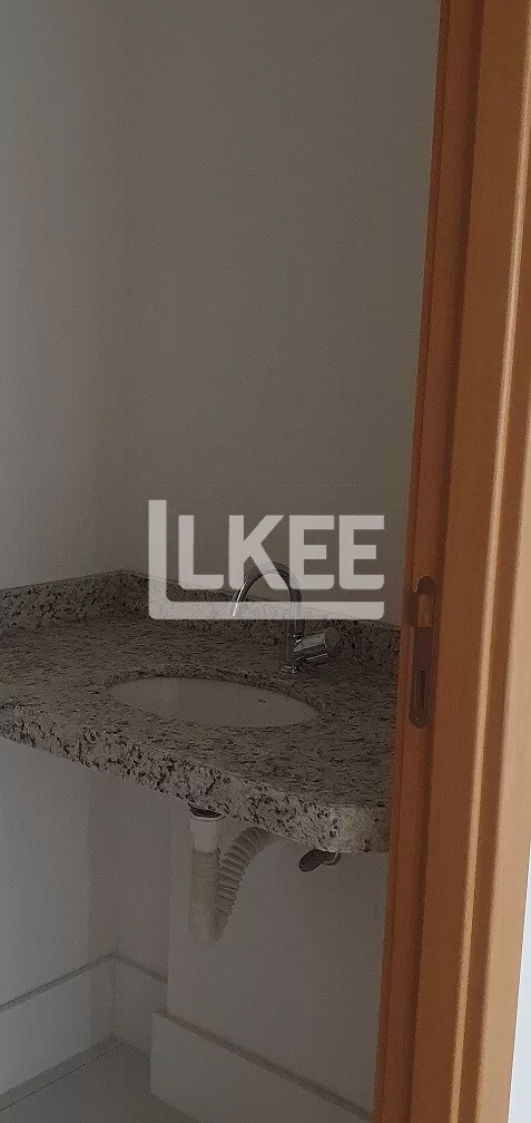 Sala de 38 m², com ótima vista, lavabo, 2º ponto de água, imóvel novo, espera para ar condicionado, piso em porcelanato, rodapés em polipropileno e rebaixamento do forro em estilo industrial.