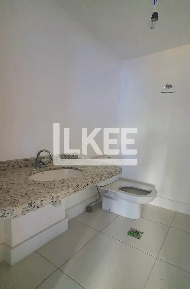 Sala de 38 m², com ótima vista, lavabo, 2º ponto de água, imóvel novo, espera para ar condicionado, piso em porcelanato, rodapés em polipropileno e rebaixamento do forro em estilo industrial.