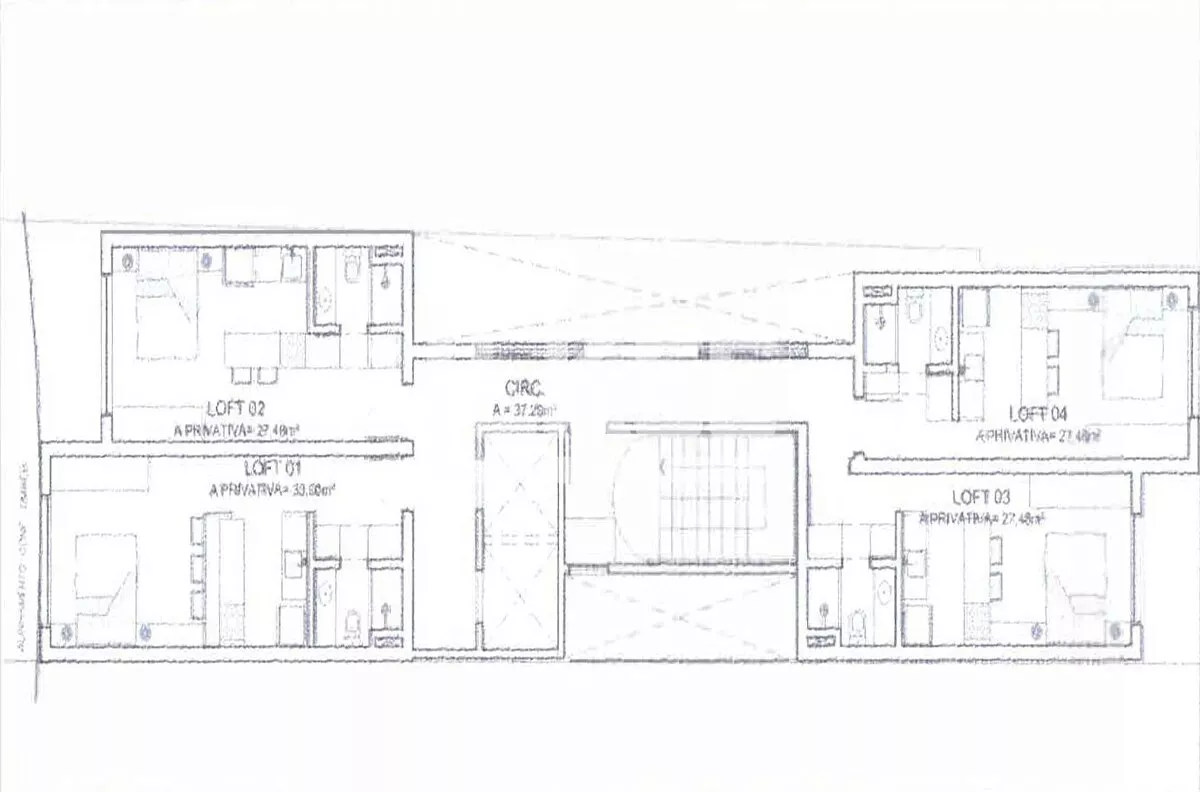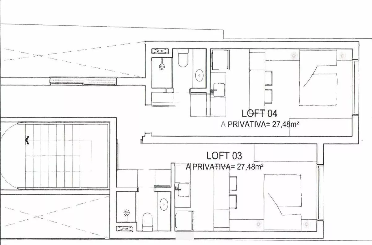 Nota 3: Duas plantas originais unificadas, possível formato de 2 quartos ou 1 quarto e escritório.