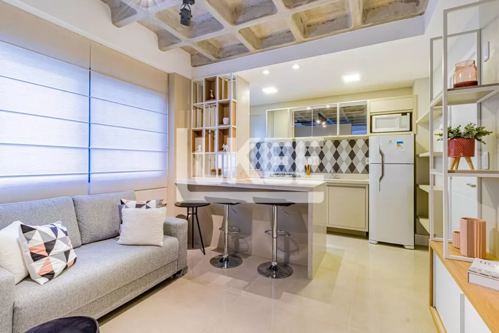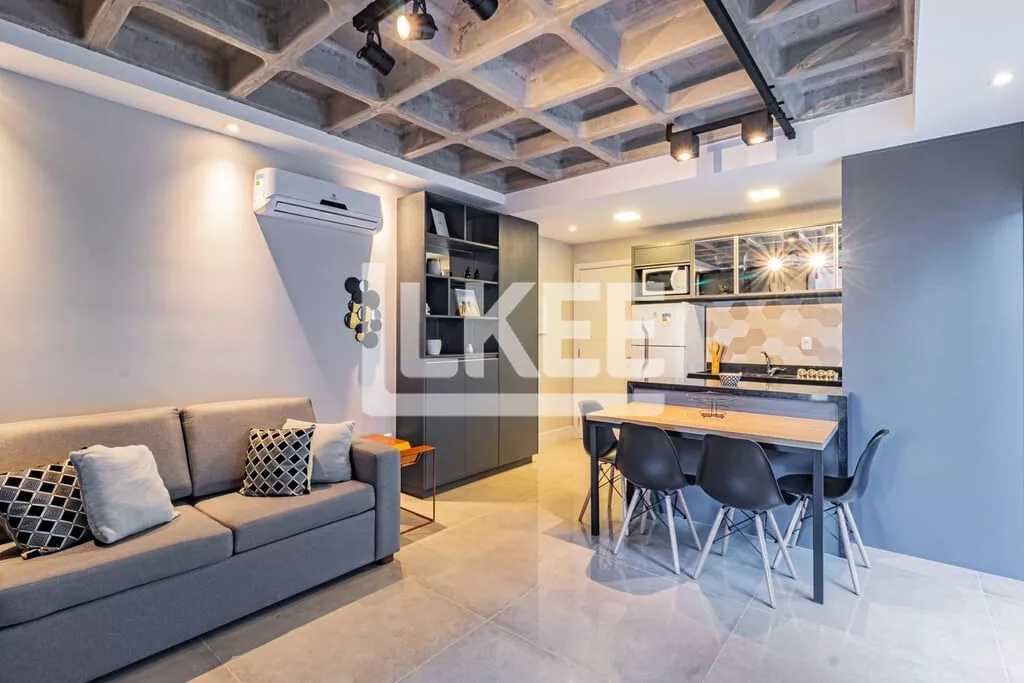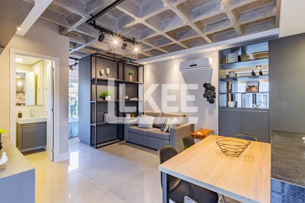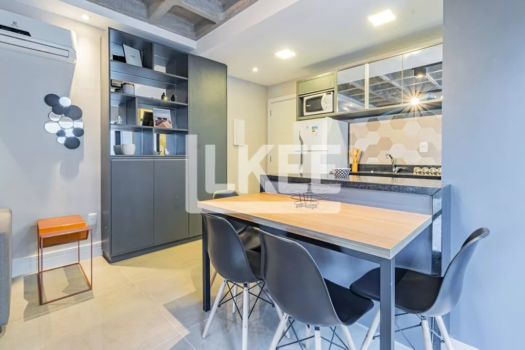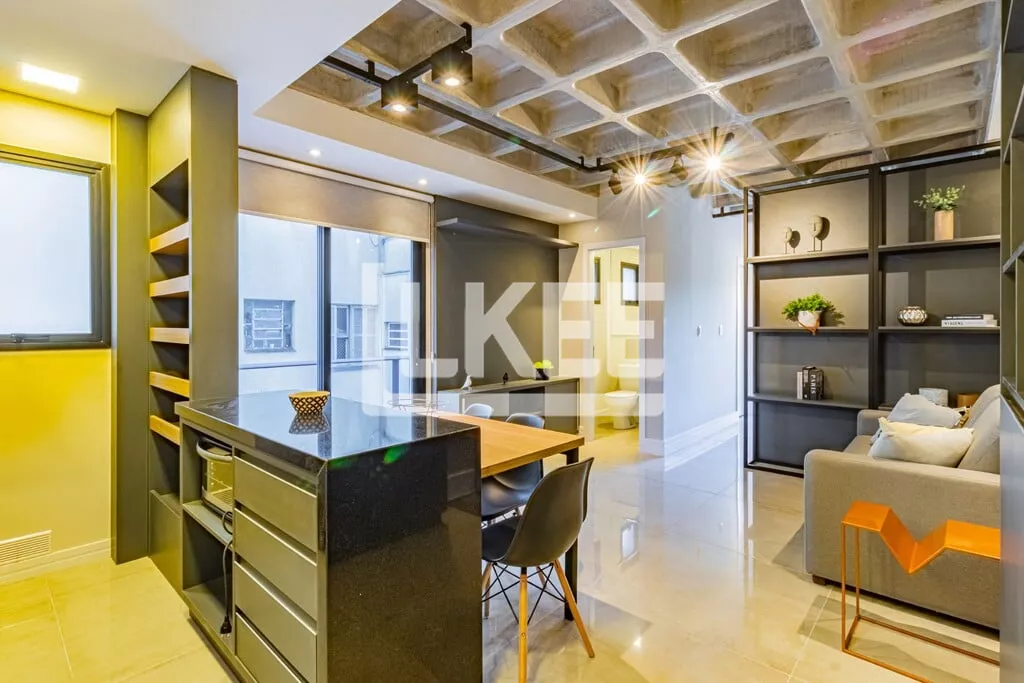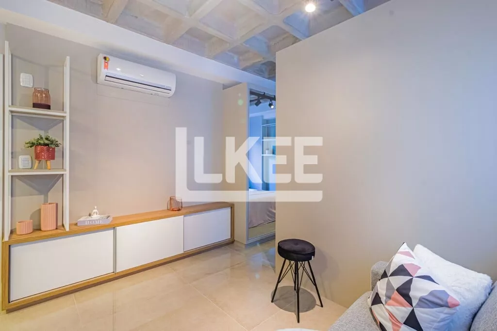 LKEE Vendas | Apartamento decorado com sacada, 1 quarto (suíte), com 30,13 m², 1 banheiro, 1 vagas de garagem coberta e escriturada, no bairro Cidade Baixa, em Porto Alegre/RS - Brasil.