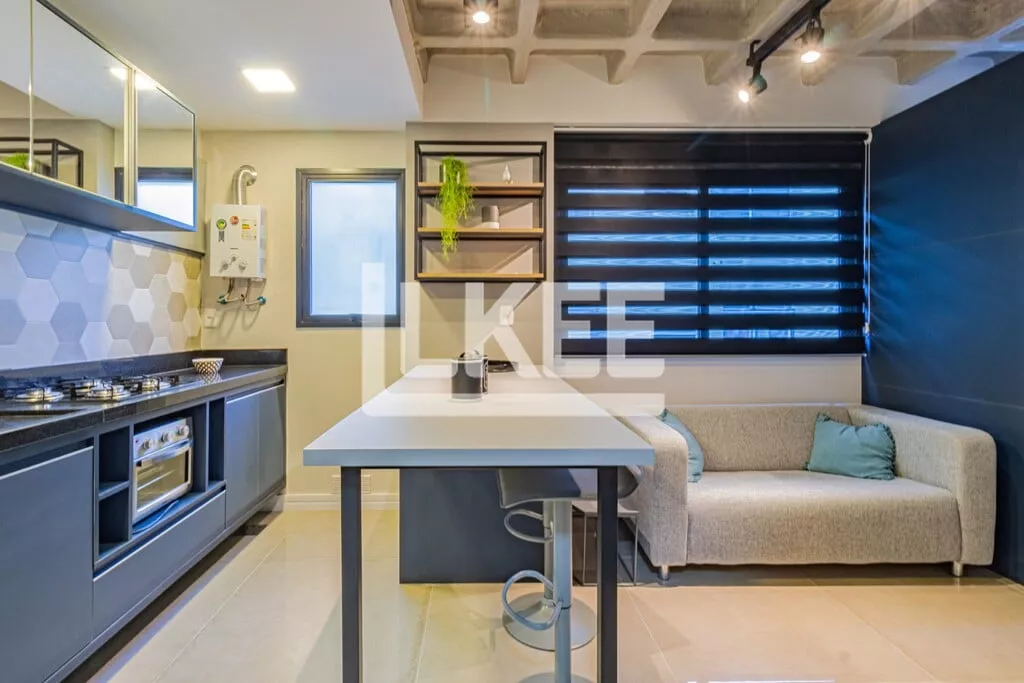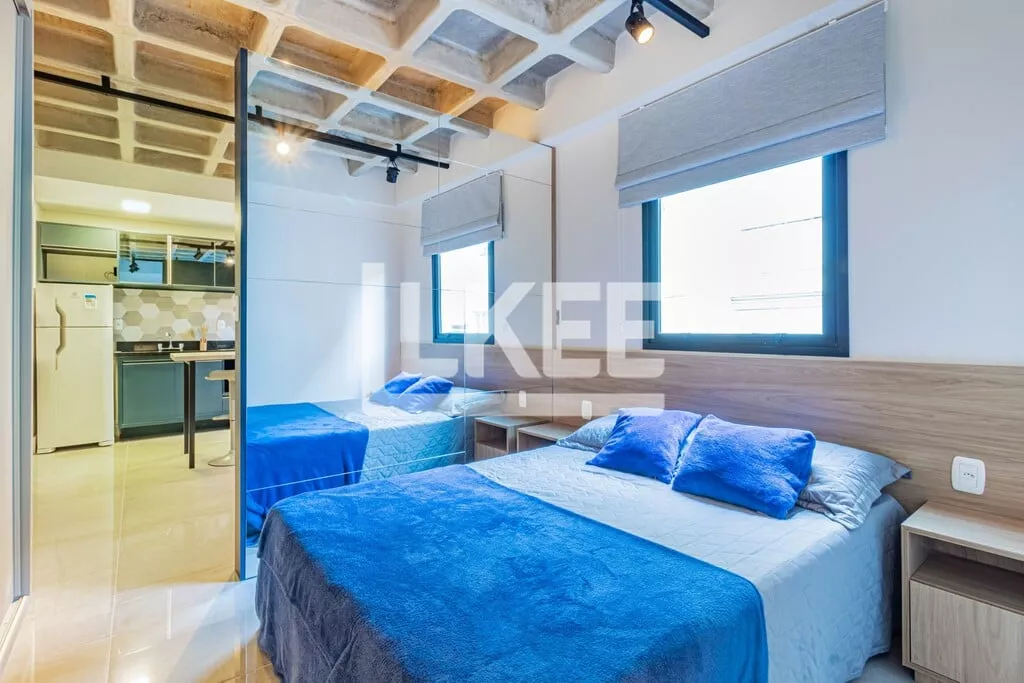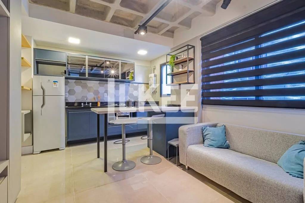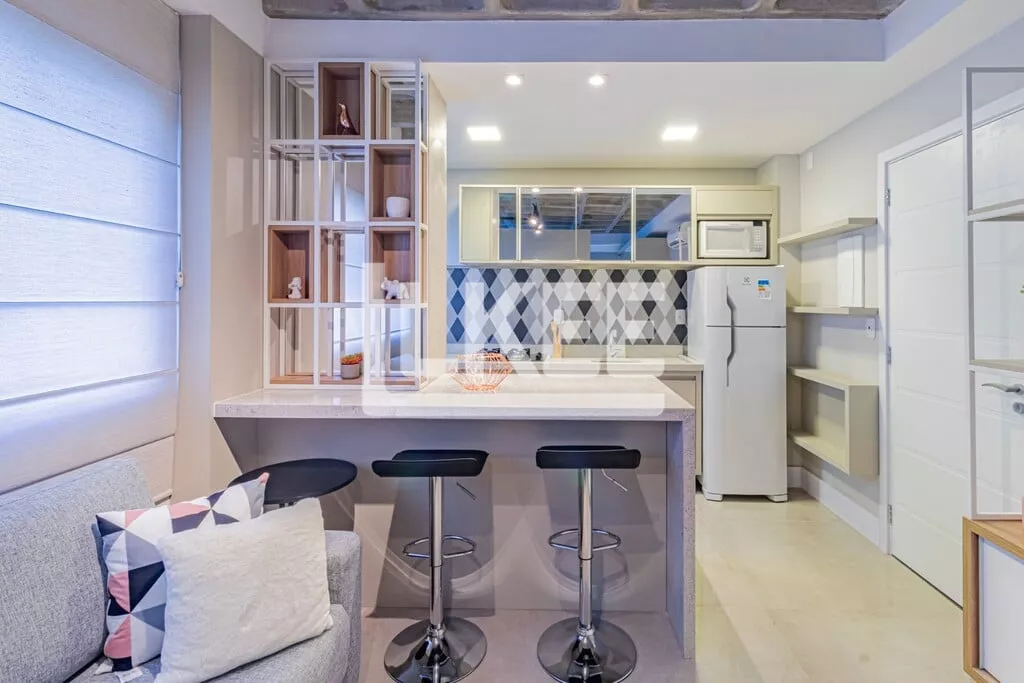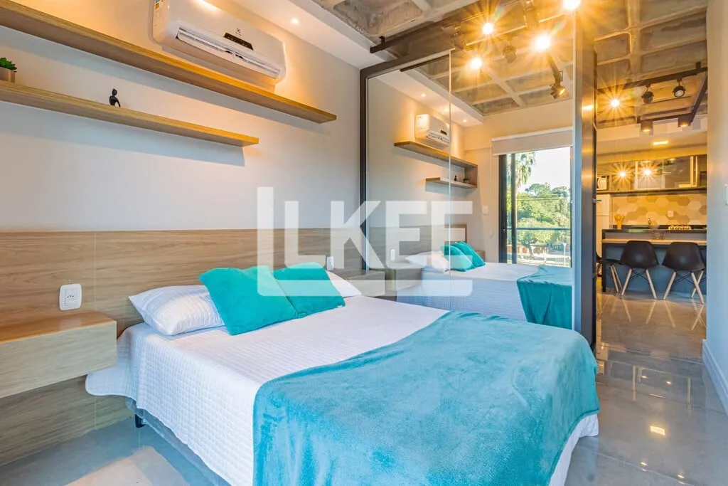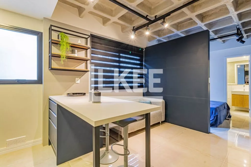 LKEE Vendas | Apartamento decorado com sacada, 1 quarto (suíte), com 30,13 m², 1 banheiro, 1 vagas de garagem coberta e escriturada, no bairro Cidade Baixa, em Porto Alegre/RS - Brasil.