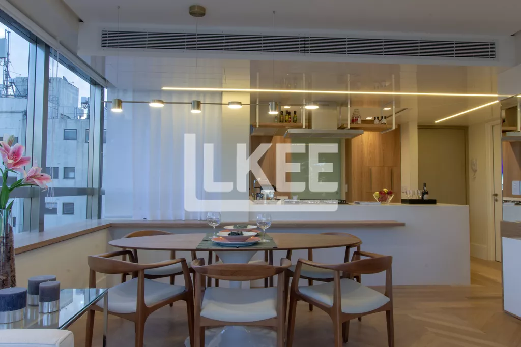 Apartamento com fechamento em pele de vidro proporcionando leveza e bem estar.