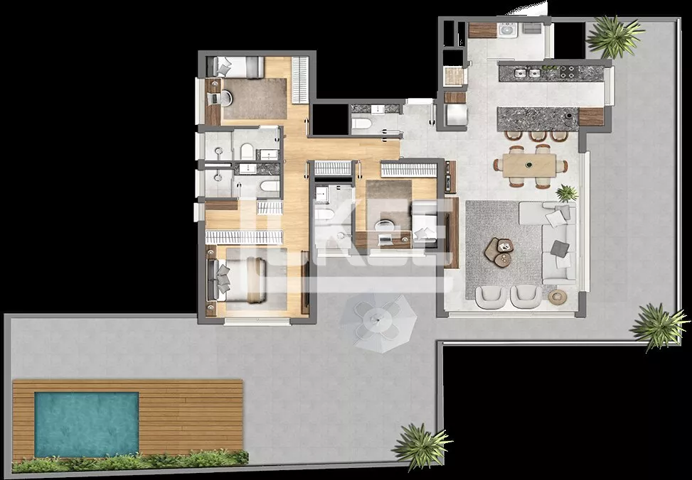 LKEE Vendas | Apartamento Garden com 3 Quartos (sendo 3 suítes), 216,65 m² (sendo 115,46 m² de terraço aberto) com piscina, 4 banheiros, e 2 ou 3 Vagas no Moinhos de Vento Em Porto Alegre/RS - Brasil.