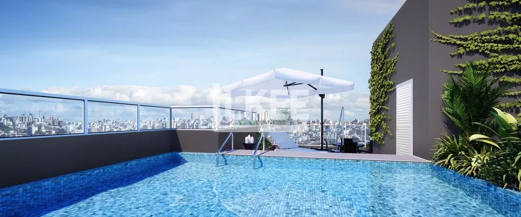 Apartamento com terraço descoberto e espera para piscina.