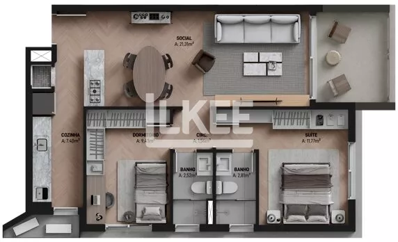 LKEE Vendas | Apartamento com sacada, 3 Quartos (sendo 3 Suítes), 149,40 m², 2 vagas cobertas e escrituradas | Em Porto Alegre/RS - Brasil.