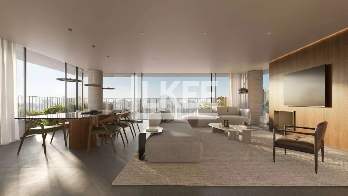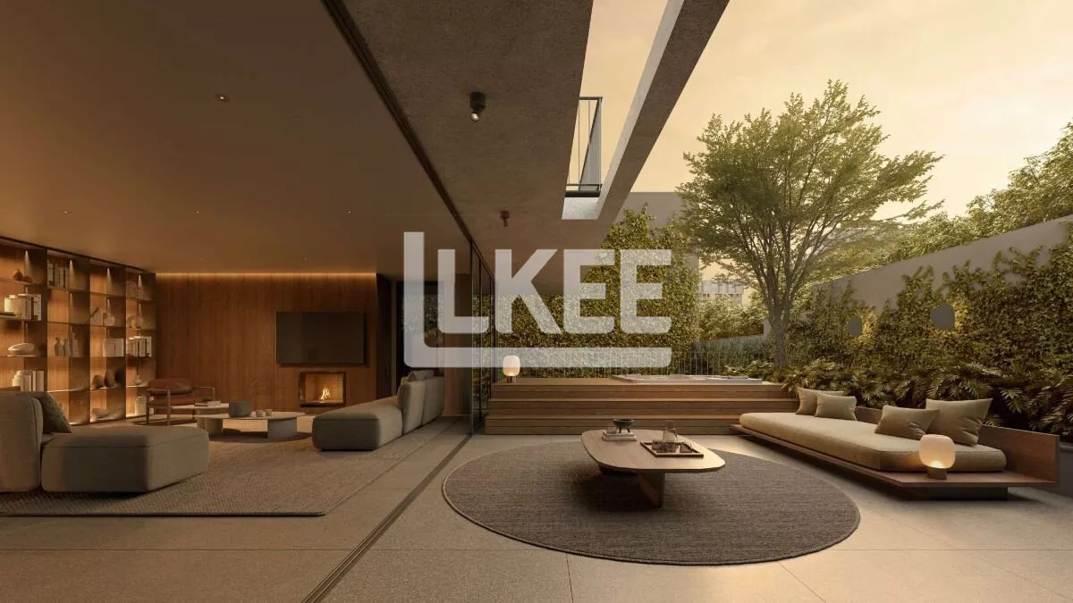 No primeiro pavimento, a área social, com sacada, se destaca com living de 41,85 m² integrado à sala de jantar e cozinha com churrasqueira, criando um espaço perfeito para receber. A lavanderia é integrada com a cozinha e o lavabo. Ainda no pavimento, estão as suítes (sendo uma máster e duas americanas). No segunda pavimento está o terraço, medindo 60,68m², com piscina exclusiva e espaço gourmet. Forro de gesso em todos o apartamento. A direção solar é para o oeste no living e no terraço.