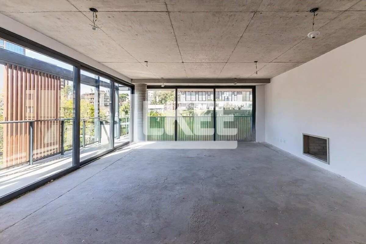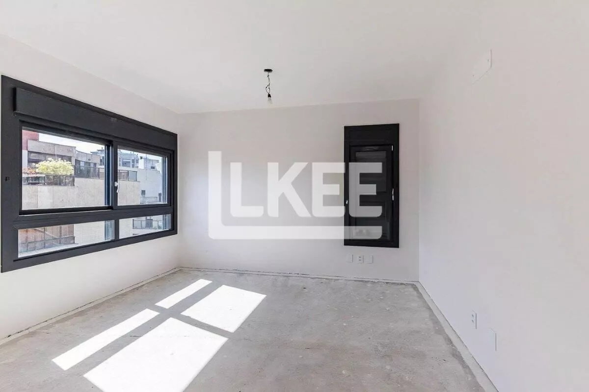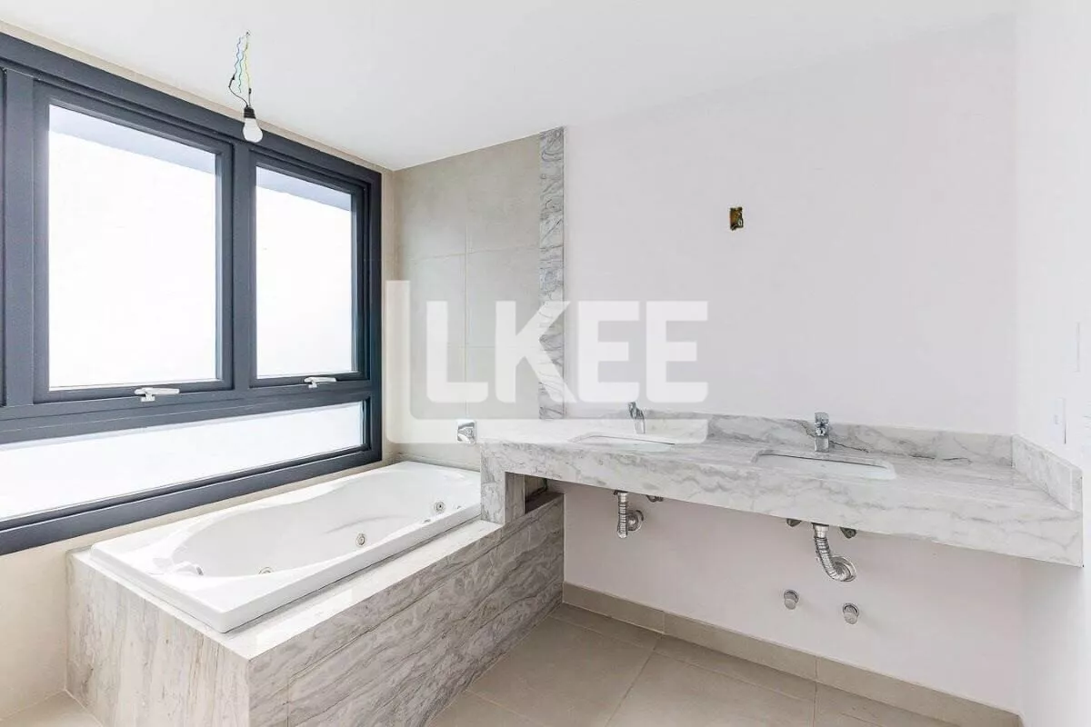 Apartamento com hall de entrada, lavabo, ambiente social com lareira, churrasqueiracom e sacada aberta, cozinha americana com churrasqueira. Área de serviço fechada com banheiro. Com 3 suítes [sendo uma máster com banheira e closet (33,25m²)]. Fechadura eletrônica na porta principal, piso aquecido nos banheiros, forro rebaixado em gesso em todas as áreas privativas, paredes externas duplas em todos os dormitórios.