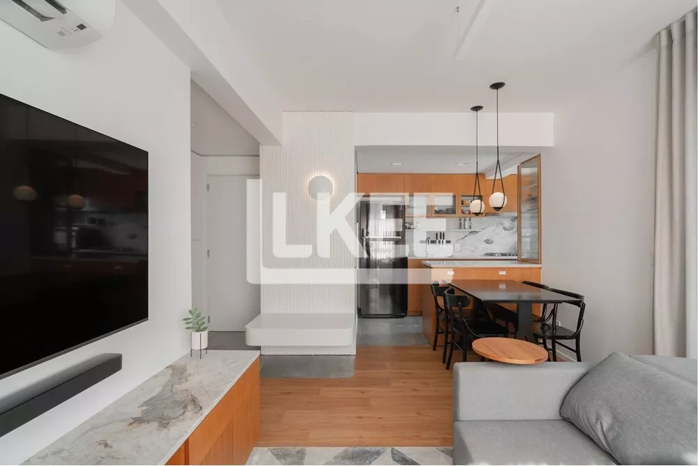 O apartamento é mobiliado e decorado por arquitetos com sofisticação e contemporaneidade, possui horta na sacada com irrigação automática para temperos e plantas. Sala para dois ambientes, cozinha completa com fogão e forno embutidos e extrator na marcenaria, conceito aberto com churrasqueira e área de serviço integrada. 2 quartos (sendo 1 suíte) e, 1 quarto escritório, banheiro social. Ar condicionado split inverter DAIKIN ( japonês) em todos os comodos e cortinas sob medida. O diferencial da sacada planejada para ter paisagismo e plantação de temperos, o espaço conta com vasos com irrigação automática para ter uma experiência diferenciada para quem curte paisagismo ou o diferencial de sabor para seu momento gourmet.
