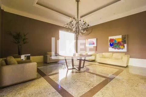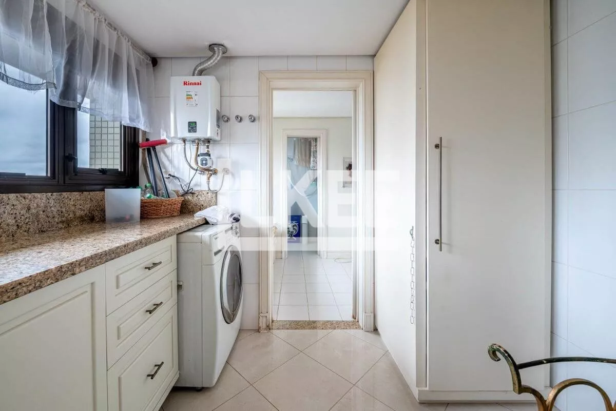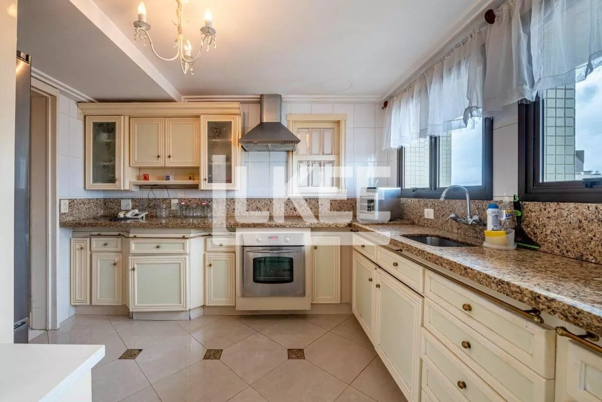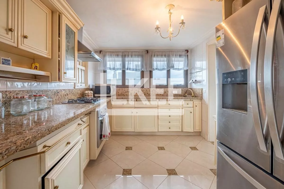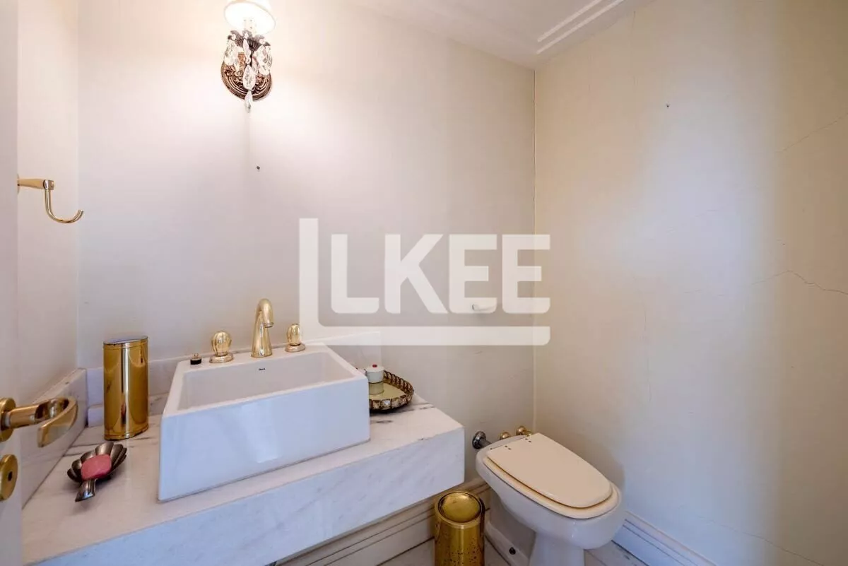 Hall, lavabo, área social que se destaca com living amplo de 2 ambientes com 120m² cada sala, piso social em mármore carrara branco até a escadaria, ar condicionado central, música em todos os ambientes. Cozinha, área de serviço, dependência de empregada. Ainda neste andar estão 3 suítes, transformadas em 2 (máster, com dormitório, gabinete, 2 closets, banheiro com hidromassagem numa área de 50m²). No segundo pavimento encontra-se a 3ª suíte. Área de terraço grande com teto e laterais de vidro. Todos os banheiros contam com ventilação natural. Possibilida de reverter a 5 quartos. O apartamento possui 2 pontos de energia por gerador.