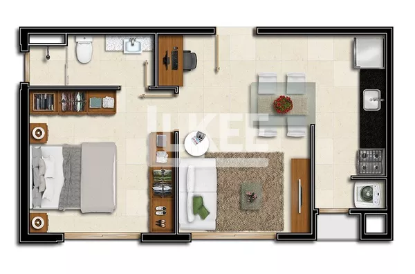 LKEE Aluguel | Apartamento mobiliado com 1 quarto (sendo 1 suíte), 43,56 m², 1 banheiro, 1 vaga  individual coberta e escriturada em Moinhos de Vento | Porto Alegre/RS - Brasil.