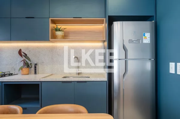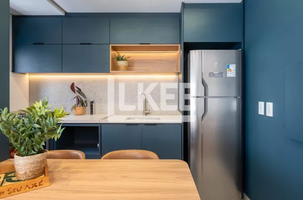 Apartamento com living 2 ambientes, cozinha em conceito aberto com churrasqueira e área de serviço integrada e banheiro social. Dois quartos. Sol norte/Oeste.