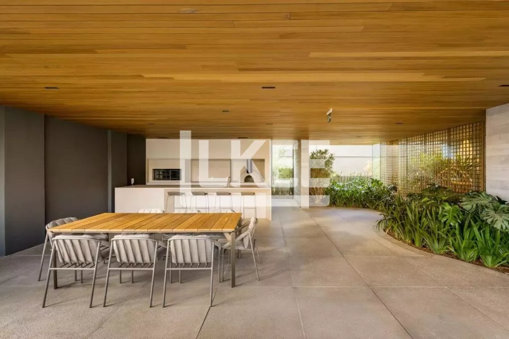 Apartamento com living dois ambientes, lareira, espaço gourmet com churrasqueira e terraço com 57,67 m². Cozinha, área de serviço e dependência de empregada completa. Três quartos, sendo três suítes. Área de estar íntimo. Suíte máster possui closet e banheira de imersão. Orientação solar norte. Esquadrias de alumínio com vidros duplos em todas as suítes e seus banheiros. Peitoril de todas as suítes de vidro. Esquadrias da sala do tipo piso-teto. Aquecedor de passagem a gás – sistema cascata. Gerador.