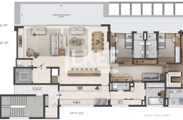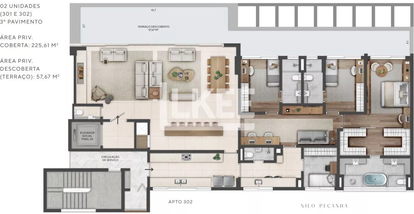LKEE Vendas | Apartamento com 3 quartos (sendo 3 suítes), 283,28m² (sendo 225,61m² de área interna e 57,67m² de área externa), churrasqueira, 5 banheiros, 3 vagas cobertas e escrituradas em Chacara das Pedras | Porto Alegre/RS - Brasil.