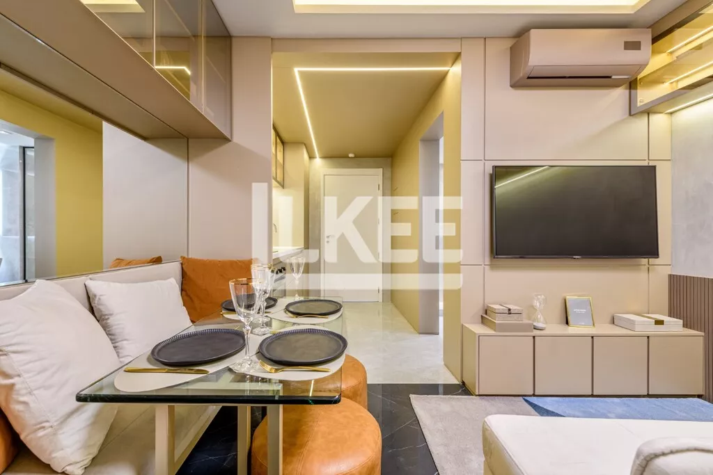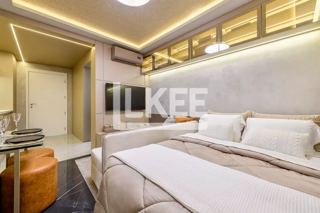 Apartamento com sala em conceito aberto integrado à cozinha. Com 1 dormitório, estilo studio.