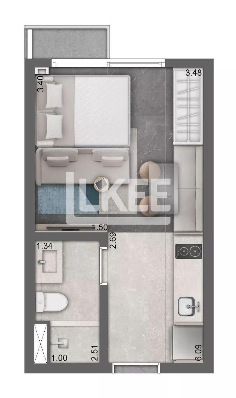 LKEE Vendas | Studio com 1 quarto, 25,04m², 1 Banheiro, Sem Vaga em Rio Branco | Porto Alegre/RS - Brasil.