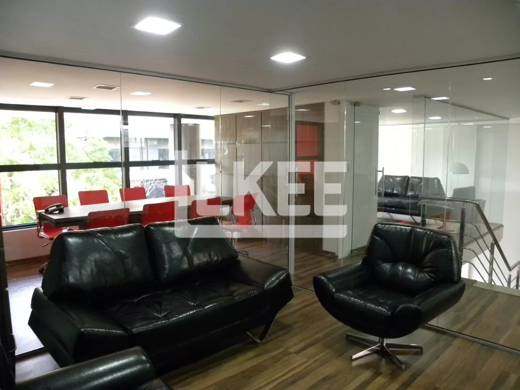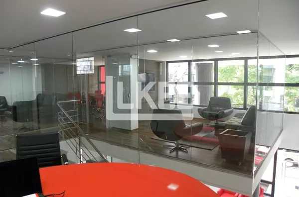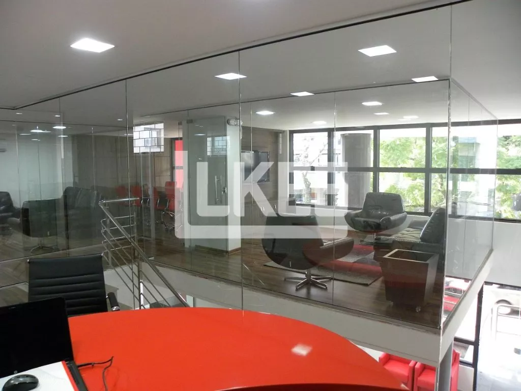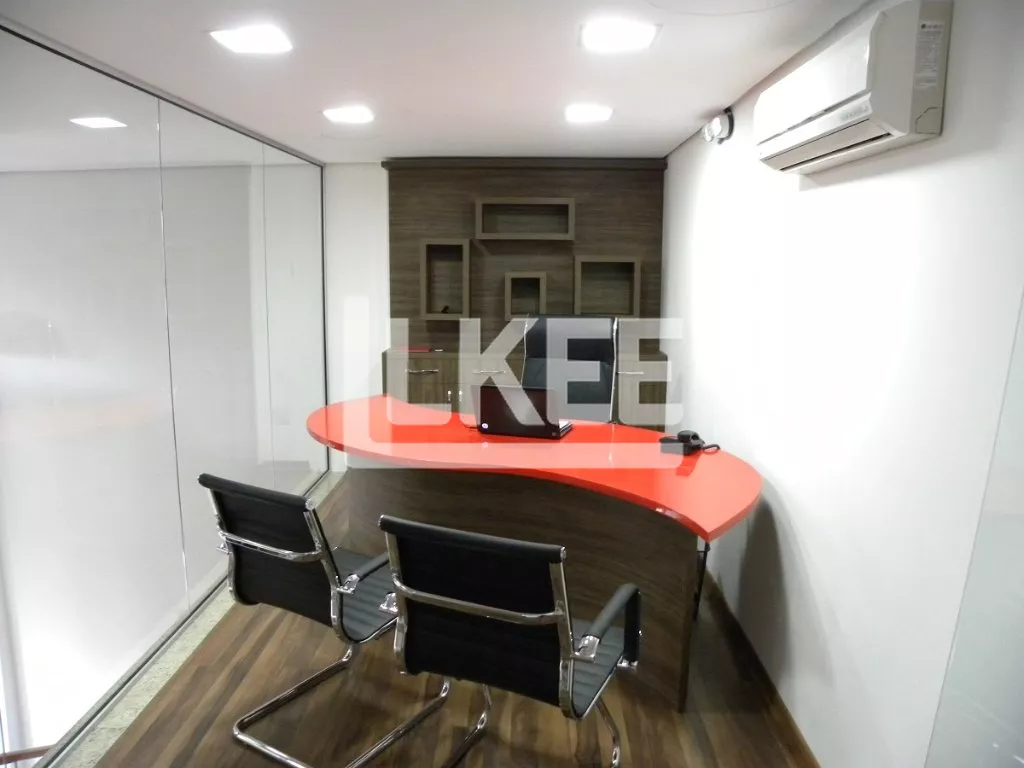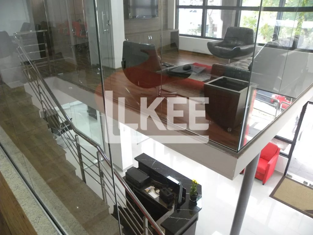 A loja conta com 2 pisos que comportam o hall de entrada, recepção, sala de reuniões e outras 5 salas com divisórias de vidro. Escada de granito e corrimões de inox, climatizada por 6 condicionadores de ar, possui central telefônica eletrônica digital, copa, 2 banheiros, armários embutidos.