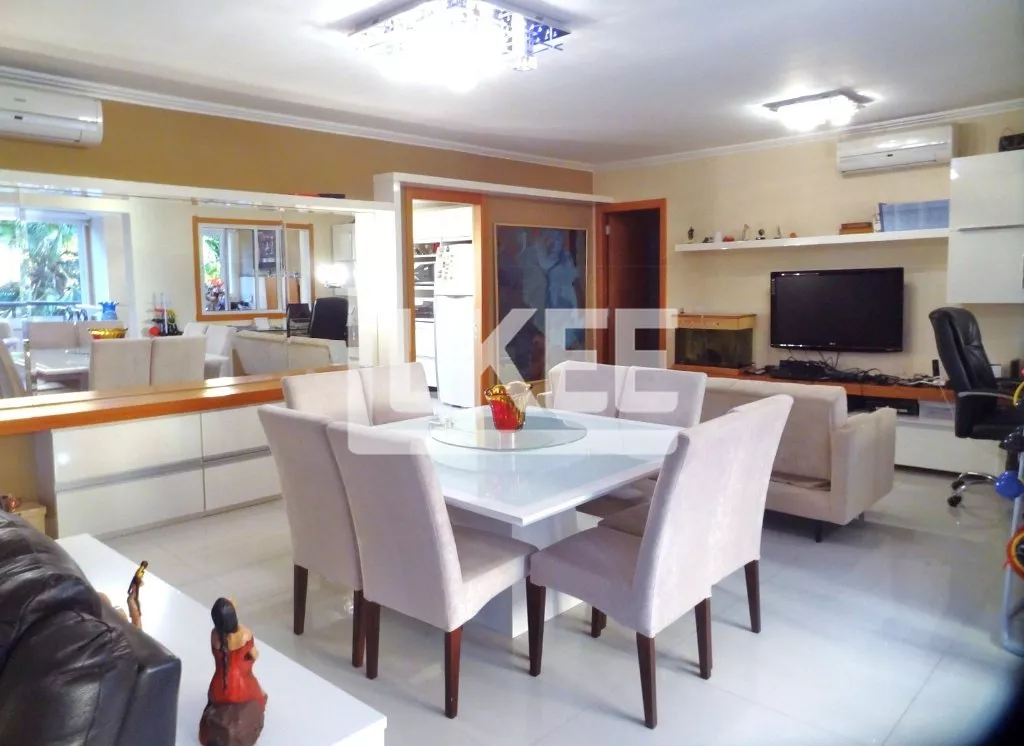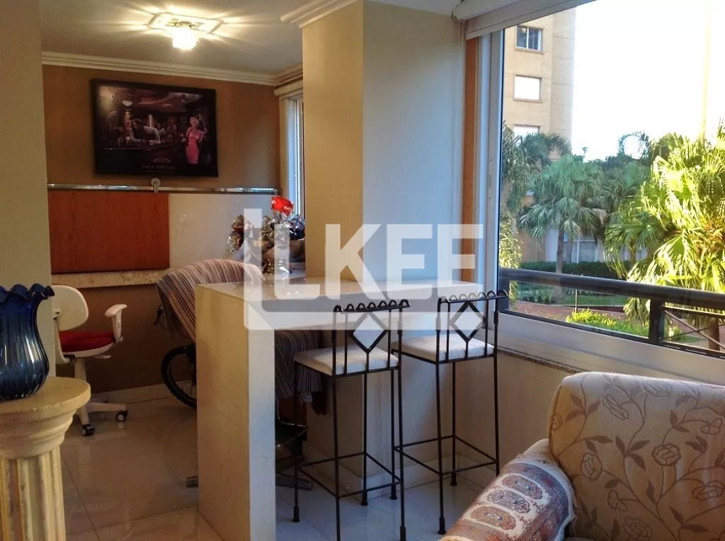 LKEE Vendas | Apartamento semi mobiliado, ambientes amplos, distribuídos em living para 3 ambientes: estar/ jantar, sala intima com lareira integrada à sacada gourmet e â à churrasqueira, configuração que privilegia o encontro, as conversas e a interação da família com amigos.
