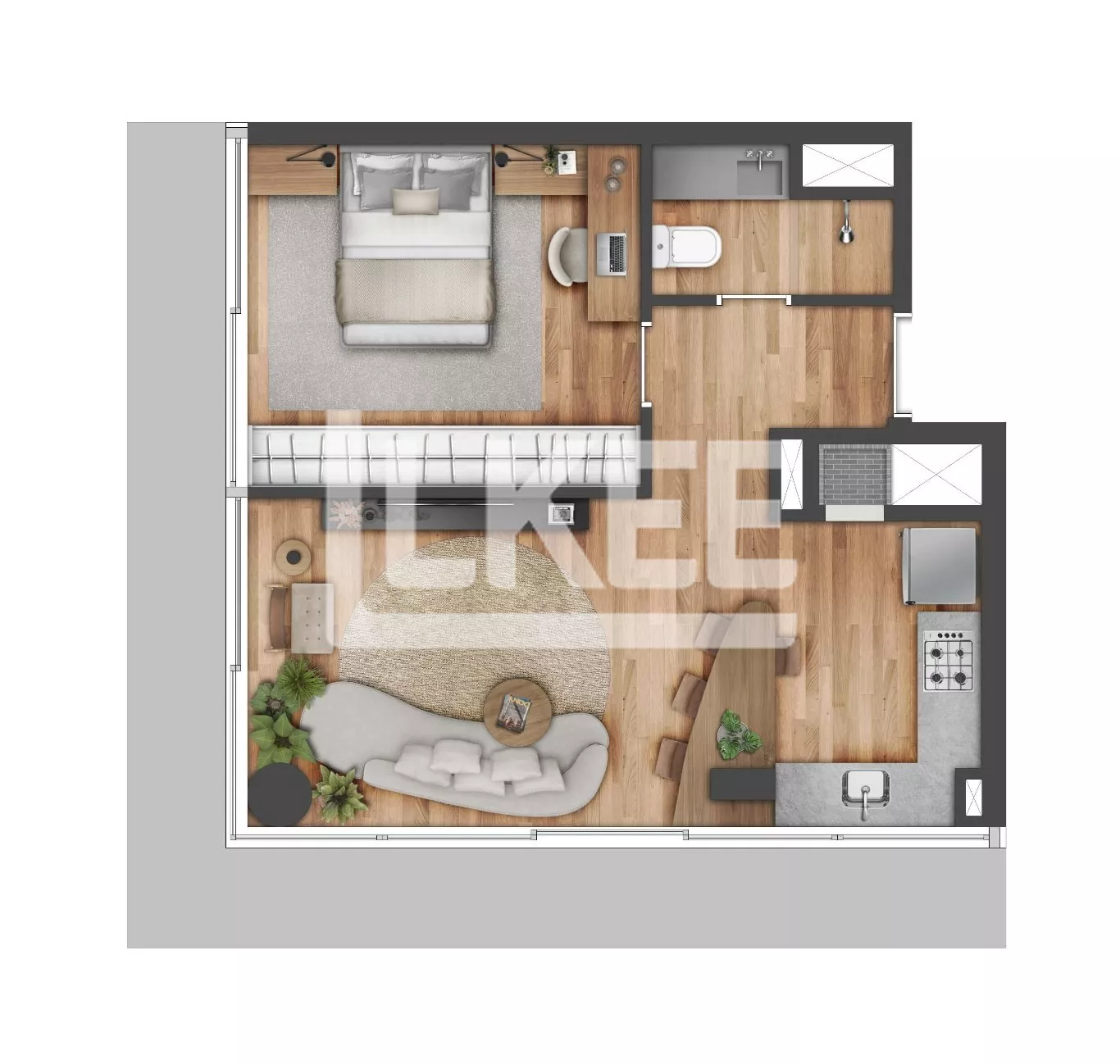 Esse imóvel conta com 1 dormitório estar e cozinha integrados, churrasqueira, 1 banheiro com vista privilegiada para Unisinos e Iguatemi com um moderno complexo multiuso.