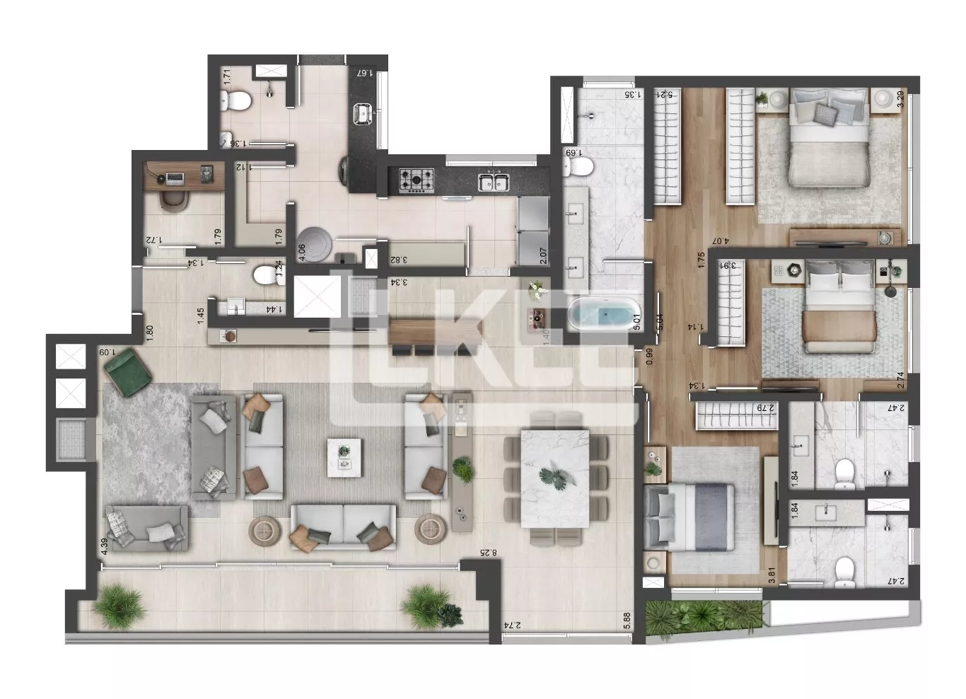 LKEE Vendas | Apartamento com 3 suítes, 187 m², 1 vaga, com lareira e churrasqueira no bairro Jardim Europa em Porto Alegre/RS Brasil.
