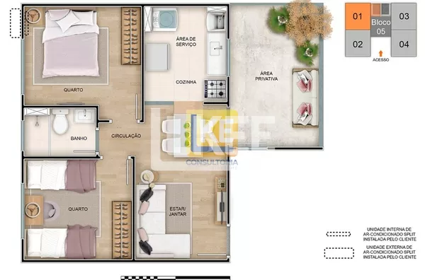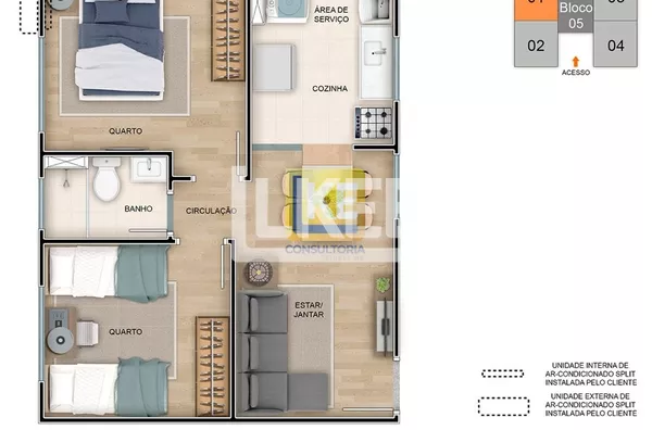 2 Dormitórios Área total: 40,82m²